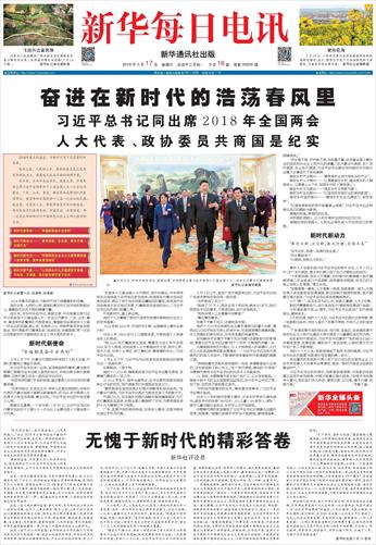 | ( 2018-03-17 ) 稿件来源: 新华每日电讯头版新闻 |
