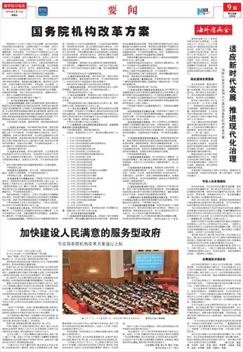 转变政府职能,优化政府机构设置和职能配置,是深化机构改革的重要任务。海外舆论及专家学者认为,此次改革聚焦发展所需,使相关机构设置更为科学合理,更符合实际、更有效率,将提高政府执行力,推动高质量发展,推动建设人民满意的服务型政府。