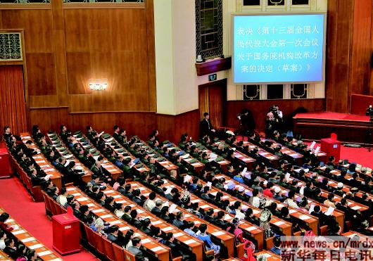 “通过!”随着一声庄严宣布,全场响起热烈的掌声,十三届全国人大一次会议批准了国务院机构改革方案。