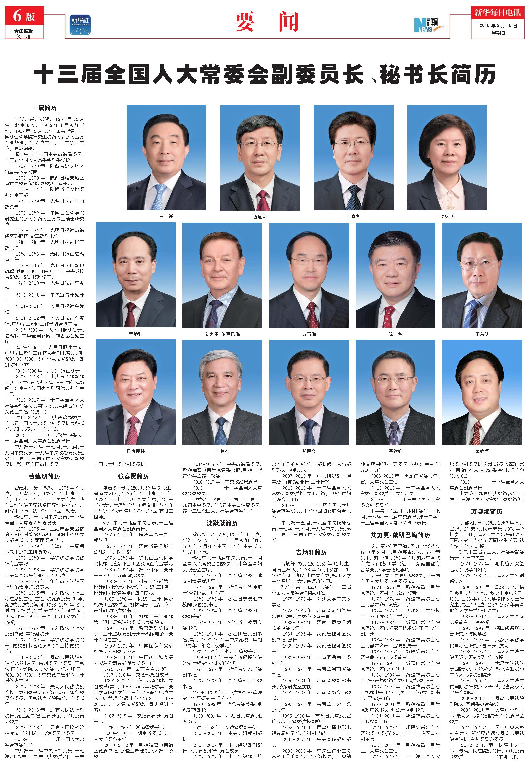 十三届全国人大常委会副委员长、秘书长简历