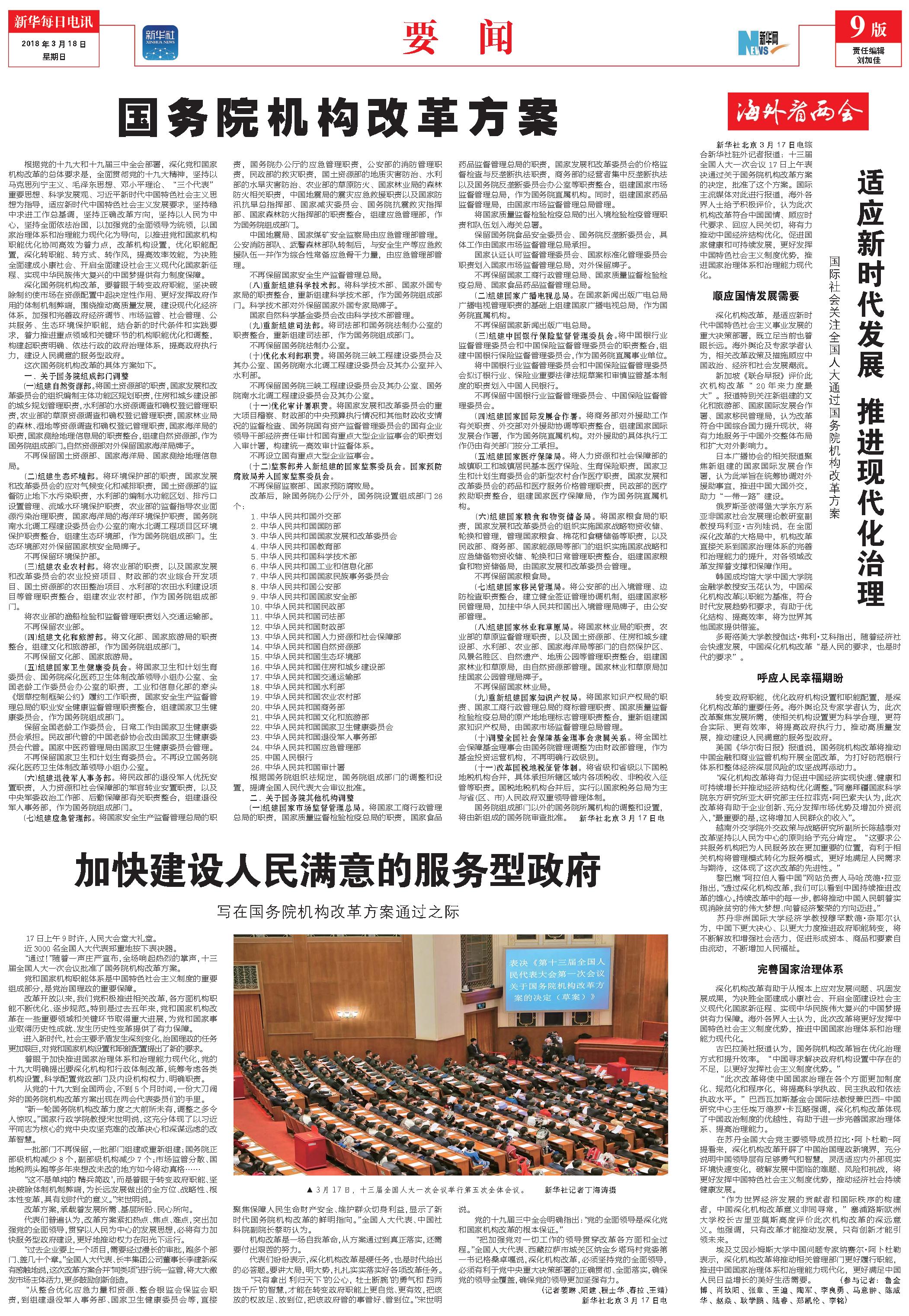国务院机构改革方案