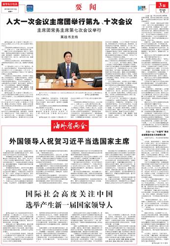 | ( 2018-03-19 ) 稿件来源:新华每日电讯 要 闻 |