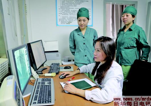 ▲在沈阳医学院附属第二医院,李潞在手术前进行准备工作(2月28日摄)。