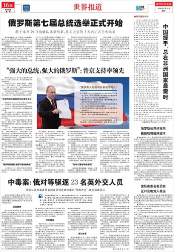 | ( 2018-03-19 ) 稿件来源: 新华每日电讯世界报道 |