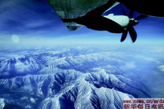 运送西部战区空军某部正连职参谋王远的运-9飞机从西藏拉萨直飞成都(3月3日摄)。新华社发(石俊摄)