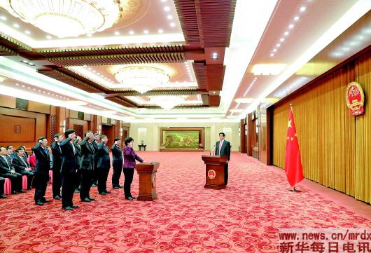 全国人大常委会举行宪法宣誓仪式 栗战书主持并监誓