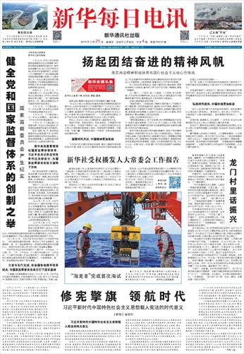 ( 2018-03-25 ) 稿件来源:新华每日电讯 头版新闻