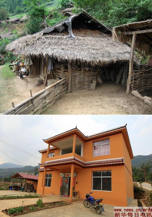 下图:沧源佤族自治县勐董镇刀董村四组一户村民的新居(3月23日摄)。