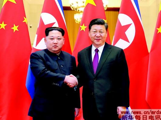 会谈后,习近平和夫人彭丽媛为金正恩和夫人李雪主举行欢迎宴会。习近平在致辞中表示,在这春回大地、万物复苏的美好时节,金正恩同志和李雪主女士对中国进行非正式访问,对双方深化沟通、加强协作、促进合作具有十分重要的意义,将推动两党两国关系在新的历史时期迈上新的台阶,为推动本地区和平、稳定、发展作出重要贡献。刚才,我同金正恩委员长进行了坦诚友好的会谈。我们一致认为,传承发扬中朝传统友谊,符合双方共同利益,是双方共同的战略选择。无论国际地区形势如何风云变幻,我们双方都会牢牢把握世界发展大势和中朝关系大局,加强高层交往,深化战略沟通,扩大交流合作,造福两国人民和各国人民。