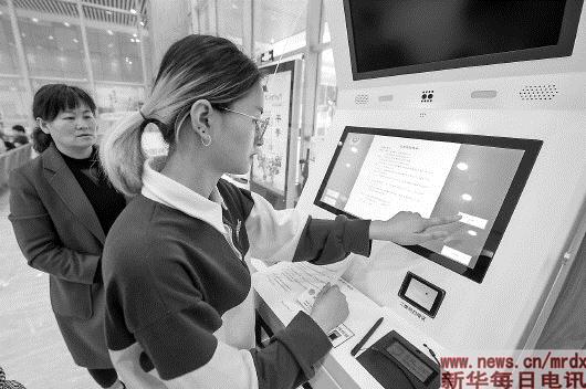 3月29日,在南京市栖霞区商事登记服务大厅,市民用自动终端机办理业务。