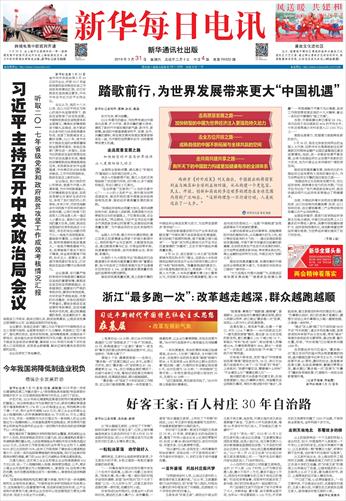 | ( 2018-03-31 ) 稿件来源: 新华每日电讯头版新闻 |