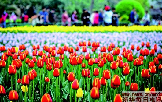 3月31日,市民在西安兴庆宫公园观赏郁金香。随着气象更新,西安各处春花烂漫,市民纷纷外出赏花,享受美好春光。