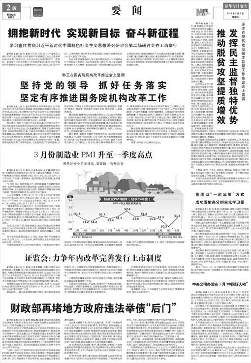 3月份制造业PMI升至一季度高点