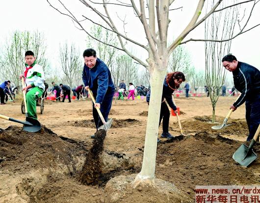 在京中共中央政治局委员、中央书记处书记、国务委员等参加植树活动。