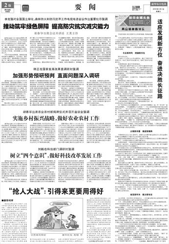 胡春华指出,党的十八大以来,在以习近平同志为核心的党中央坚强领导下,农业农村发展取得巨大成就,粮食和农业综合生产能力稳步提升,农民收入较快增长,农业结构持续优化,农村改革不断深化,农业农村工作部门发挥了积极作用。组建农业农村部是党中央着眼党和国家事业全局作出的重大决策,目的是为了加强党对“三农”工作的集中统一领导,坚持农业农村优先发展,统筹实施乡村振兴战略,推动农业全面升级、农村全面进步、农民全面发展,加快实现农业农村现代化。农业农村部要切实担负起统筹研究和组织实施“三农”工作战略、规划和政策的职责,突出加强农村工作的职能和机构,着力推动乡村产业、人才、文化、生态和组织振兴,推动乡村振兴健康有序进行。要坚持巩固提升粮食产能,推进农业供给侧结构性改革,落实好农村人居环境整治三年行动方案,确保实施乡村振兴战略开好局、起好步。