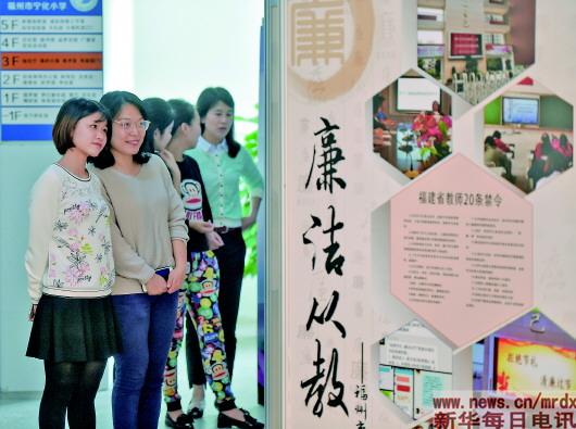 2018年以来,福建省福州市教育部门开展师德师风建设专项行动,成立专项治理教师有偿补课工作办公室,建立教师自我约束机制和廉洁从教问责机制,以“零容忍”态度整顿中小学在职教师有偿补课行为。新华社记者宋为伟摄