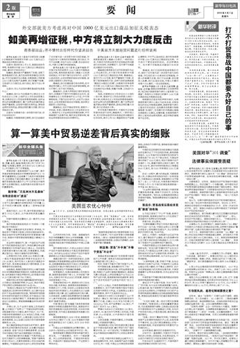 本月3日,美国贸易代表办公室依据“301调查”结果公布拟加征关税的中国商品建议清单,涉及每年从中国进口的价值约500亿美元商品。5日,美国总统特朗普表示,已指示美国贸易代表办公室依据“301调查”,考虑对从中国进口的额外1000亿美元商品加征关税是否合适。