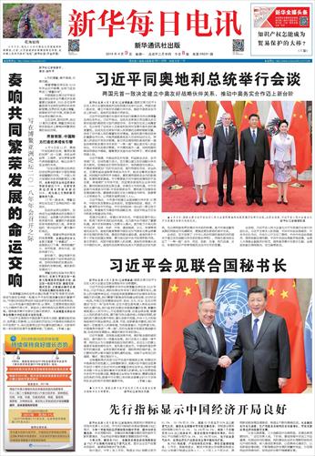 | ( 2018-04-09 ) 稿件来源: 新华每日电讯头版新闻 |