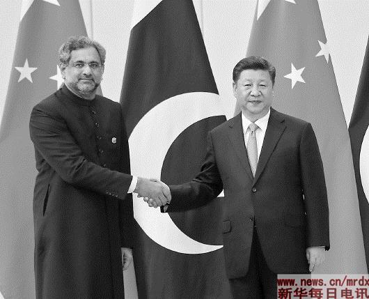 习近平指出,我2015年访问巴基斯坦以来,中巴全天候战略合作伙伴关系取得长足进展。当前,国际和地区形势正在发生深刻复杂变化。巩固中巴全天候友谊,深化中巴战略合作,具有更加重要和现实意义。中巴关系应当成为睦邻友好的典范、地区和平稳定的支柱、“一带一路”国际合作的标杆。中方愿同巴方一道,发挥高层交往对双边关系的重要引领作用,保持各领域密切交流,弘扬传统友好,继续相互支持,深化利益融合,推动中巴关系实现更高水平发展,打造更加紧密的中巴命运共同体。双方要继续稳步推进中巴经济走廊建设,规划和实施好瓜达尔港等基础设施、能源、产业园区等项目。