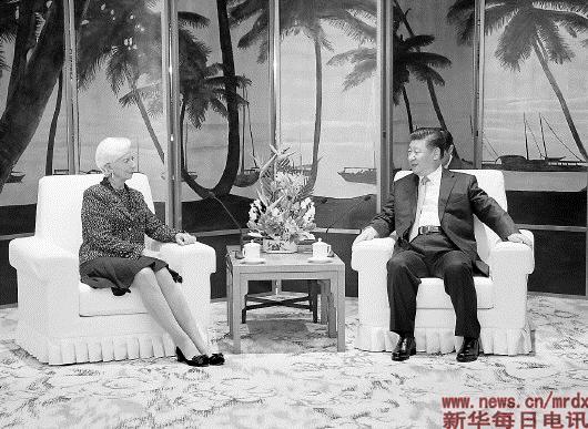 新华社海南博鳌4月10日电(记者侯丽军、涂超华)国家主席习近平10日在海南省博鳌国宾馆会见国际货币基金组织总裁拉加德。