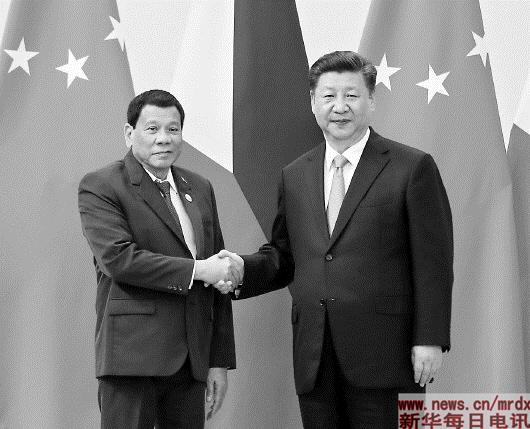 杜特尔特表示,当前菲中关系保持良好发展势头。菲律宾感谢中国对菲经济社会发展、提高反恐维稳能力给予的帮助和支持。菲方愿积极参与共建21世纪海上丝绸之路,密切同中方在经贸、渔业、旅游、教育、基础设施、执法、安全等领域合作。菲方愿同中方一道努力,通过双边沟通协商,继续保持南海和平稳定,使南海成为菲中两国间一个合作领域。菲将接任中国-东盟关系协调国,愿积极促进深化东盟同中国的合作。