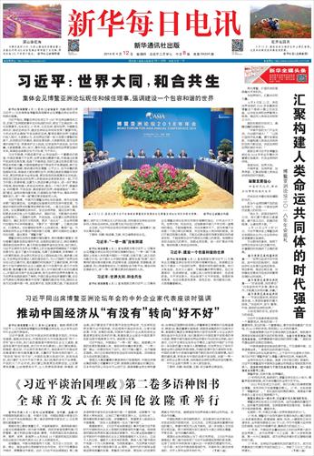 | ( 2018-04-12 ) 稿件来源: 新华每日电讯头版新闻 |