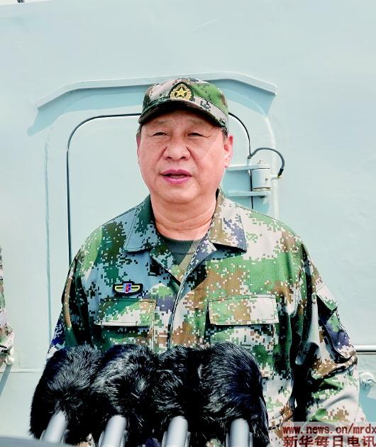 习近平要求海军将士们,全面贯彻党对军队绝对领导的根本原则和制度,切实加强党的建设,坚定理想信念,弘扬光荣传统,努力锻造听党指挥、政治过硬的海上劲旅。全面深化改革,大力推进科技创新,加快发展新型作战力量,着力构建现代海上作战体系,努力增强遂行多样化军事任务的能力和水平。全面落实战斗力标准,大抓实战化军事训练,保持高度戒备状态,时刻听从党和人民召唤,坚决捍卫国家权益,努力为维护世界和地区和平稳定作出新的更大的贡献。
