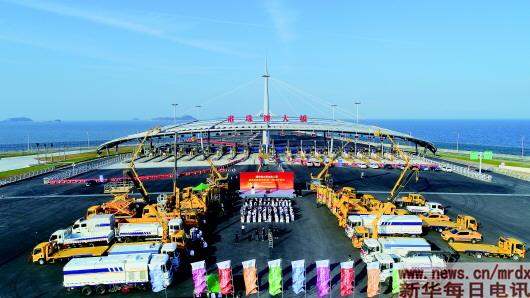4月10日,港珠澳大桥主体工程首批拯救及养护设备交车仪式现场。