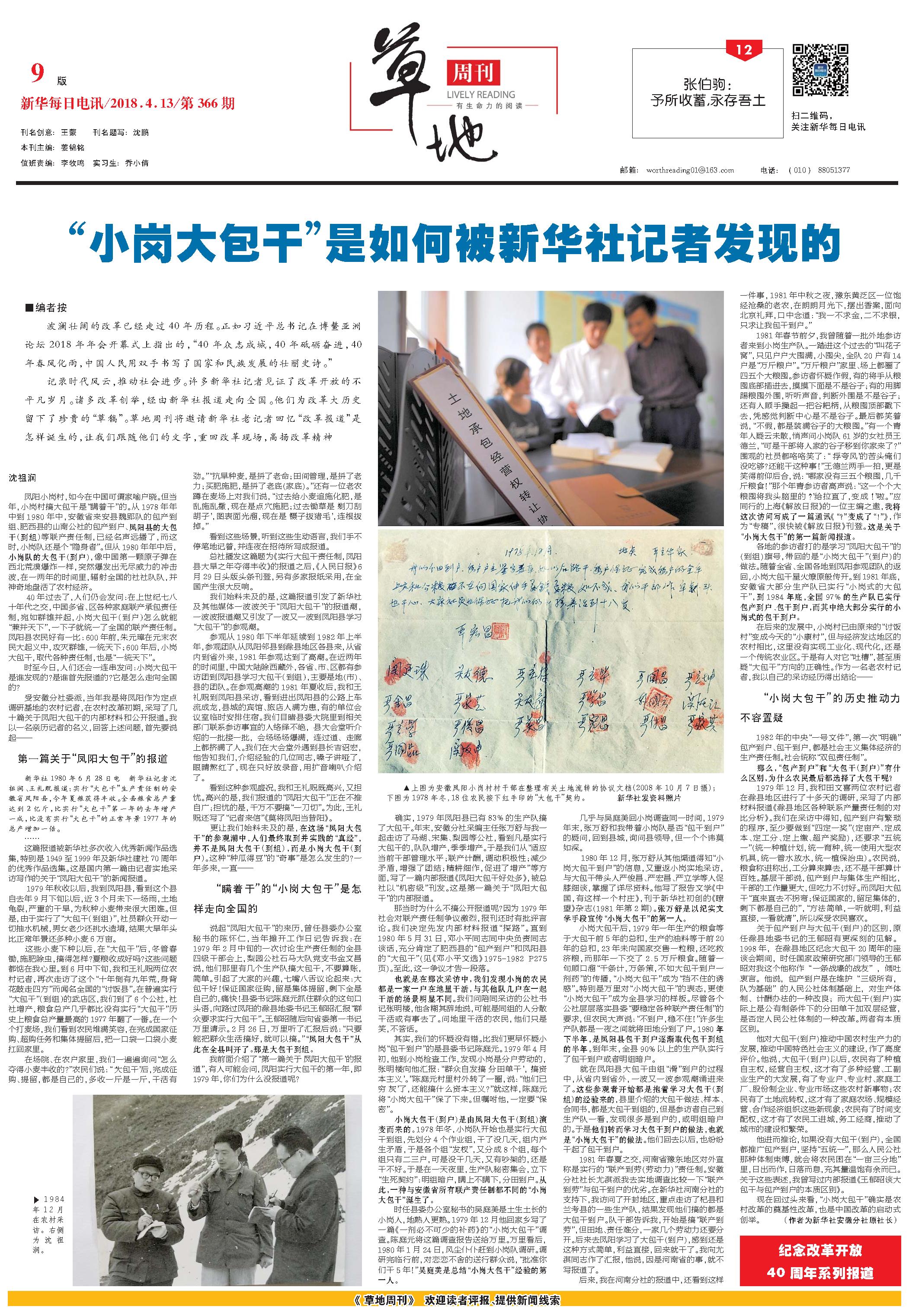 “小岗大包干”是如何被新华社记者发现的