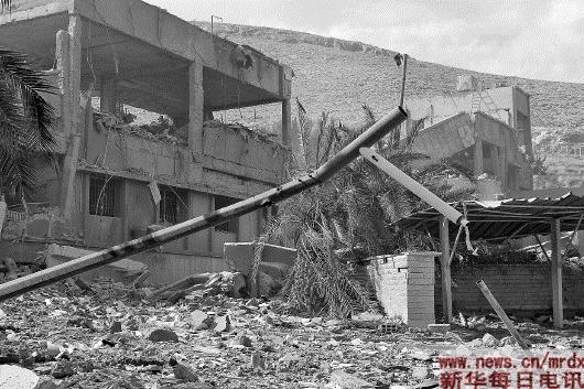 ▲这是4月14日在叙利亚大马士革东北部拜尔宰地区拍摄的遭袭的科学研究中心。