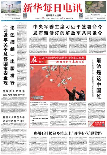 | ( 2018-04-16 ) 稿件来源:新华每日电讯 要 闻 |