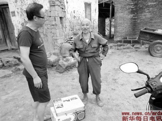 | ▲胡学发(左)生前走访贫困户。 新华社发 |