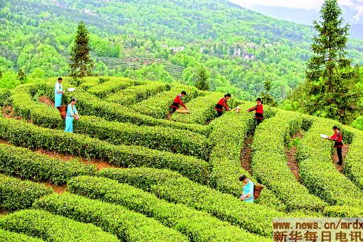 时下正是春茶采摘季节,在湖北五峰土家族自治县,一片片生态茶园点缀在青山绿水间,形成一道亮丽的茶乡生态美景。