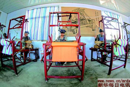 ▲4月15日,迁安市杨店子镇高引铺村“绣娘手工坊”的工人在织布车间工作。为促进当地妇女就业创业,河北省迁安市杨店子镇高引铺村2017年9月在省妇联支持下注册成立了村集体控股、全民参股的“绣娘手工坊”,让村里的妇女根据自身情况选择来厂里或在家里使用传统方法纺织土布,制作床上用品、围巾、箱包等,产品俏销北京、上海和广州等地,带动全村410个家庭增收。