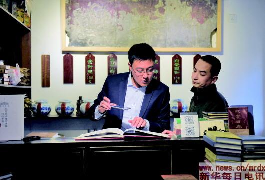 图二:正阳书局的负责人崔勇帮读者查阅史料。