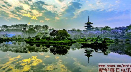 ▲武汉市东湖,樱花园晨曦。摄影:李桂发(湖北省档案馆馆藏图片) |