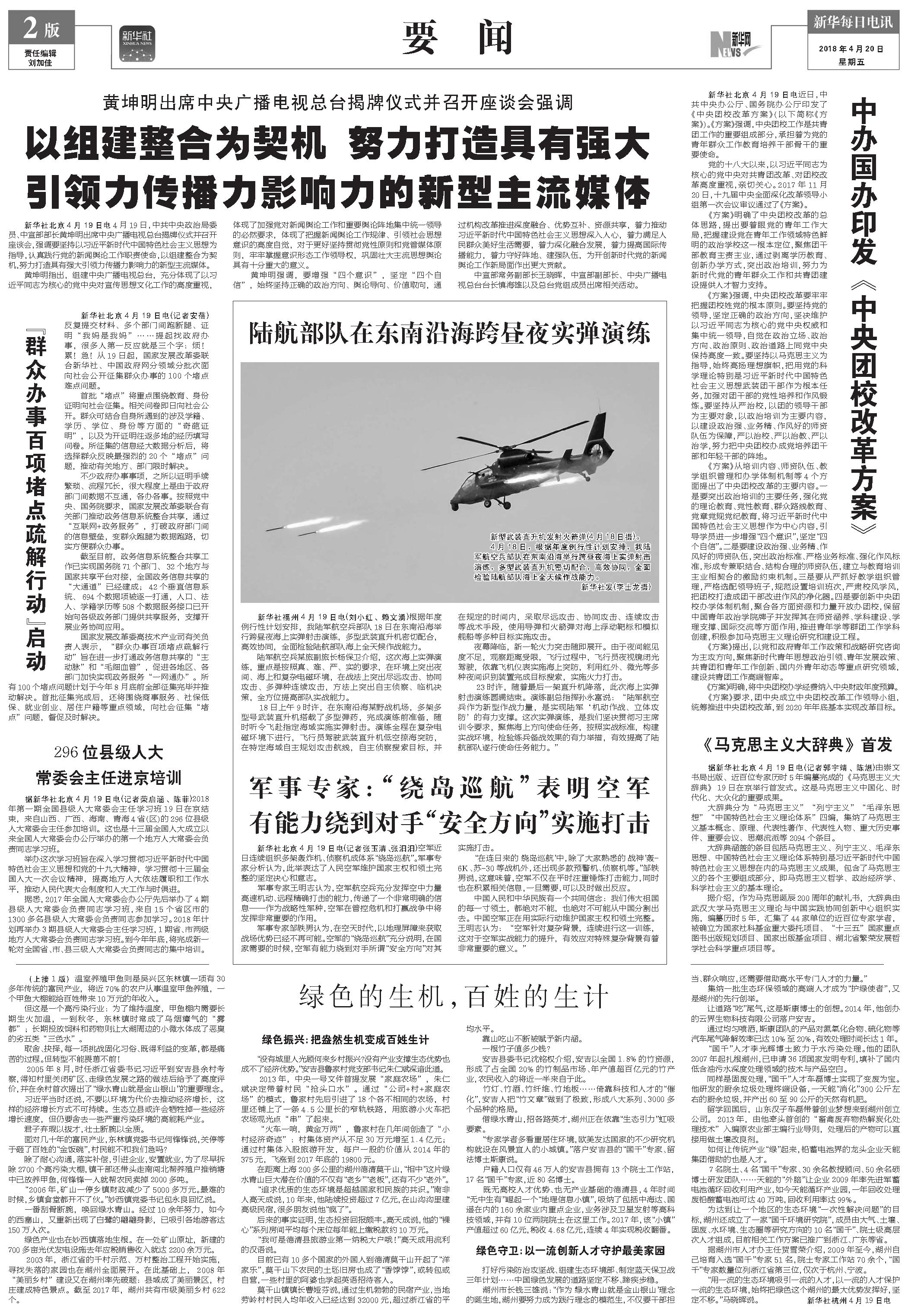 以组建整合为契机 努力打造具有强大引领力传播力影响力的新型主流媒体 (2018年04月20日) |