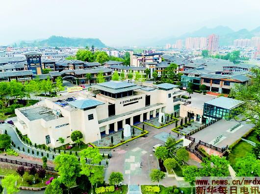 4月18日无人机拍摄的“4·20”芦山强烈地震纪念馆。5年后的芦山,一幢幢高楼鳞次栉比,一个个新村点缀在绿水青山间。
