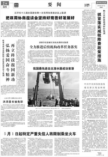 | ( 2018-04-21 ) 稿件来源: 新华每日电讯要 闻 |