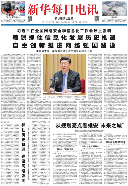 习近平在全国网络安全和信息化工作会议上强调 敏锐抓住信息化发展历史机遇 自主创新推进网络强国建设 李克强主持 栗战书汪洋王沪宁赵乐际韩正出席