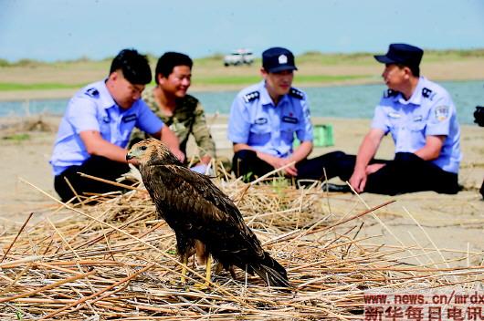 ▲2017年8月15日,达赉湖公安分局民警救助白腹鹞。