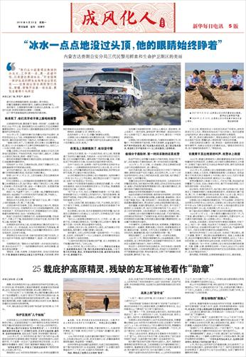当同伴驾车追击逃窜的盗猎者时,吐逊又独自端起钢枪,留下看守被控制住的28名盗猎者。顶着零下30多摄氏度的寒温坚守了1个多小时,吐逊的左耳被冻掉一截。
