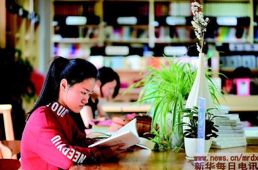 ▲社区居民在安徽省肥西县上派镇水晶城小区社区书吧里阅读(4月19日摄)。