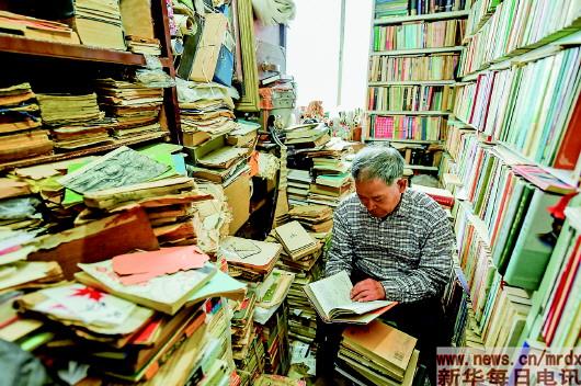 ▲内蒙古呼和浩特文苑旧书店,70岁的段存瑞在看书(4月19日摄)。