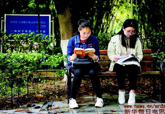 ▲重庆市四川外国语大学的学生在校园内晨读(4月20日摄)。