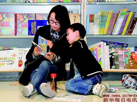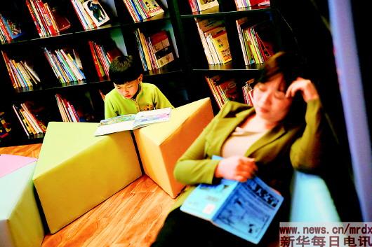 ▲4月21日,一对母子在山东省青岛书城阅读。