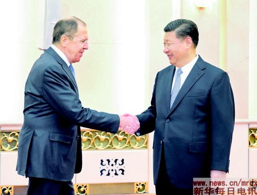 4月23日,国家主席习近平在北京人民大会堂会见俄罗斯外长拉夫罗夫。
