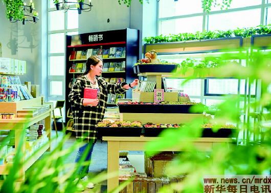 4月23日,是世界读书日,一家绿色生态主题书店在沈阳市某商场开门迎客,店内优雅的阅读环境吸引读者纷纷前去体验。