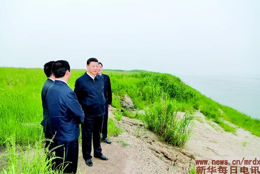 ▲这是座谈会前,习近平于25日下午在岳阳市君山华龙码头察看非法砂石码头取缔及整治复绿、湿地修复情况。