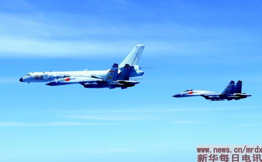 4月26日,人民空军轰-6K等多型战机实施“绕岛巡航”训练课题。